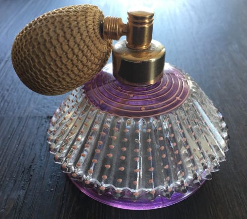 ANTIQUE ~ VINTAGE CUT GLASS Atomizer Purple Pink Dots ~ Unique!