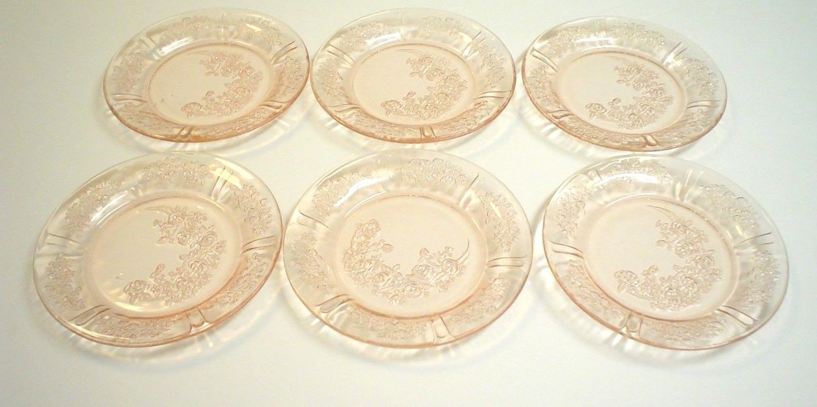 Title (ebay affiliate link): Vintage Pink Depression Glass Sharon Dessert / Bread Dishes