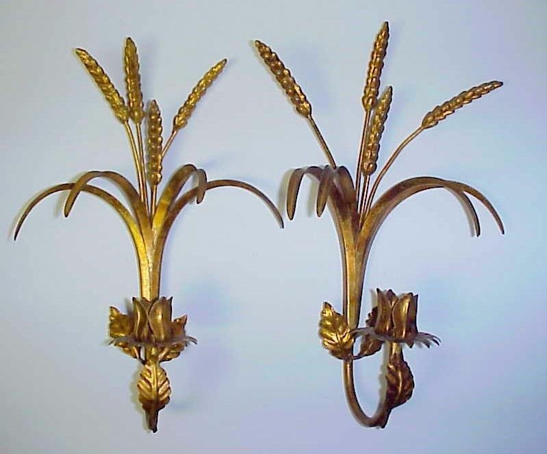 Title (ebay affiliate link): VINTAGE ITALIAN TOLE GOLD WHEAT SCONCES HOLLYWOOD REGENCY Mid-Century Modern