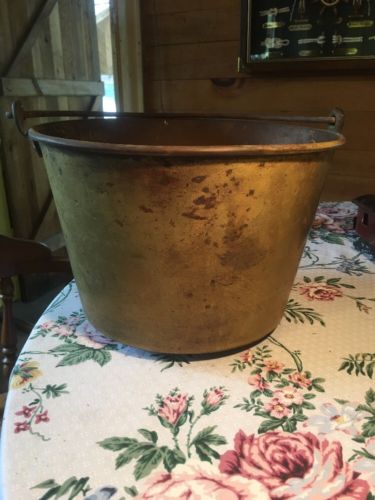 Title (ebay affiliate link): Large Vintage Copper Pail Pot Bucket Wrought Iron Handle Rustic Antique Vtg