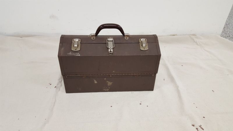 vintage Kennedy 1017 metal tool box, hip roof cantilever style