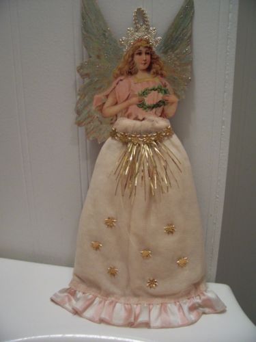 Antique Look Ornament, COTTON Batting ANGEL, Dresden, Scrap,Tinsel, Hand Made