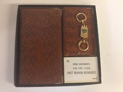 Title (ebay affiliate link): Vintage 1957 Ford Honor Banquet Award Gift Set Key Chain Snake Skin Books Set 3