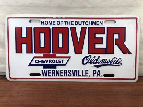 Title (ebay affiliate link): Vintage Hoover Chevrolet Oldsmobile Wernersville, PA. Advertising License Plate