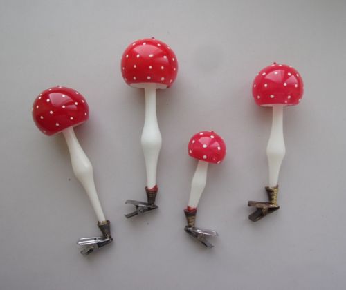 Title (ebay affiliate link): LOT OF 4 VINTAGE CLIP ON BLOWN GLASS MUSHROOMS CHRISTMAS ORNAMENTS