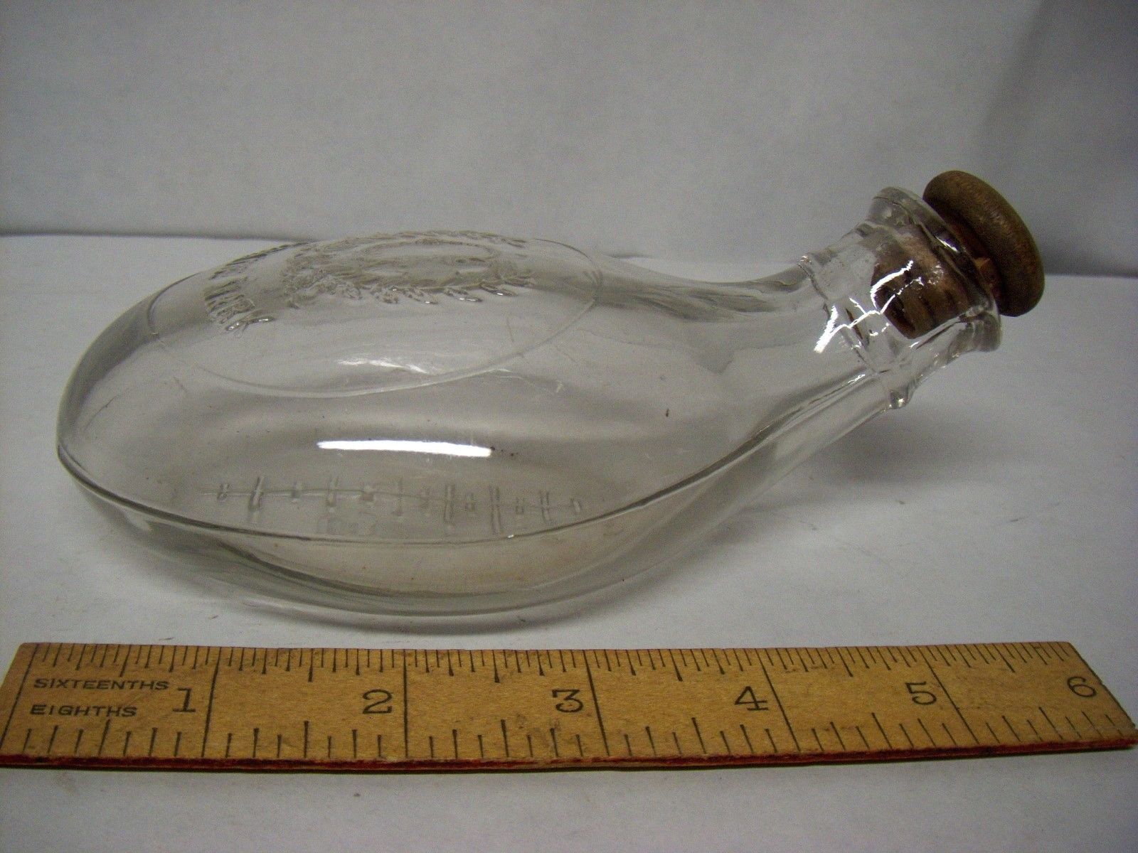 Antique Oval Graduated Baby / Invalid Glass Feeder w/ Stopper - Embossed ''G''