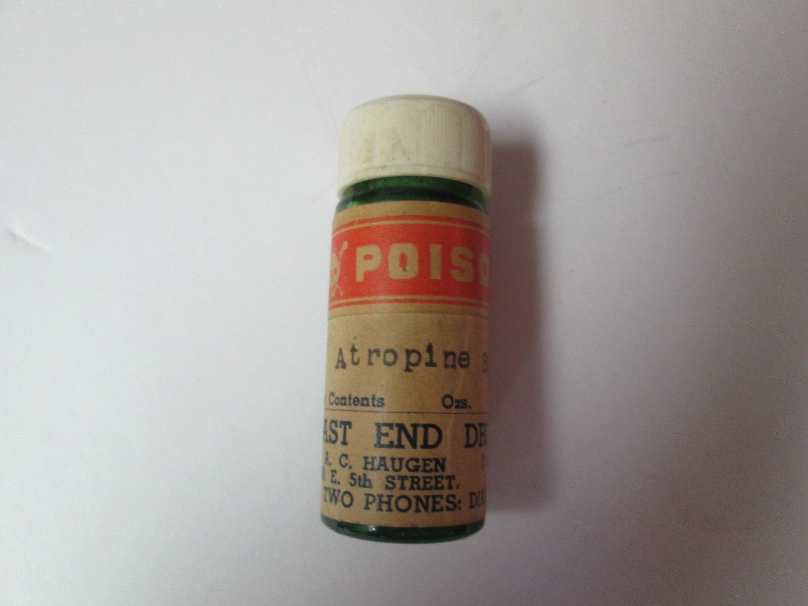 Vintage East End Drug Store WI Pharmacy Apothecary Glass Jar Bottle Atropine