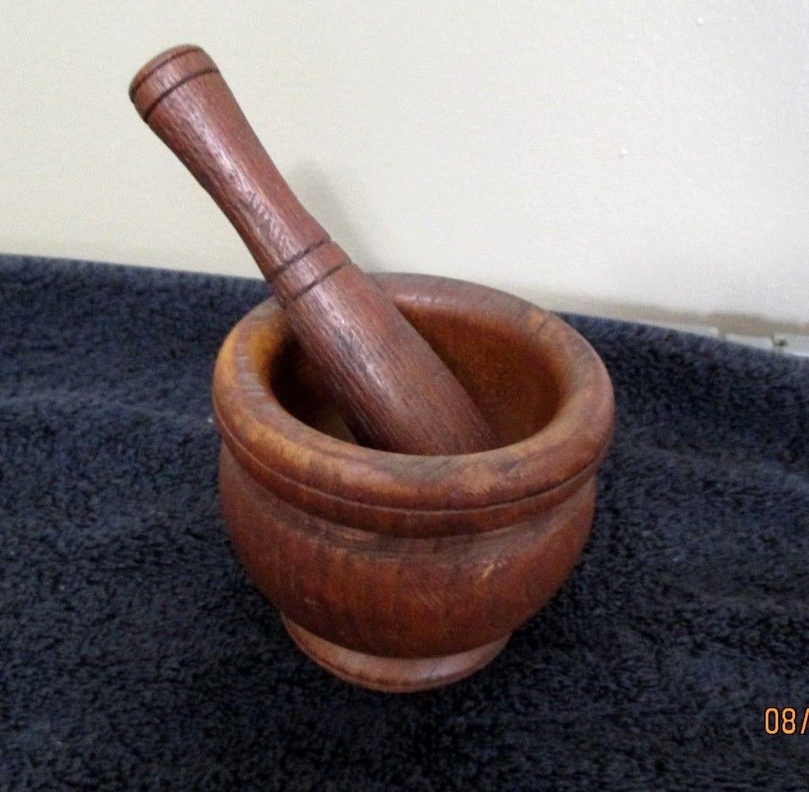 Title (ebay affiliate link): ANTIQUE MORTAR and PESTLE WOOD PHARMACY 3-1/2" tall BROWN COLLECTIBLE ART