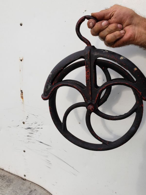 Title (ebay affiliate link): Antique Cast Iron Water Well Pulley Wheel 11" Diameter Vintage Barn Farm