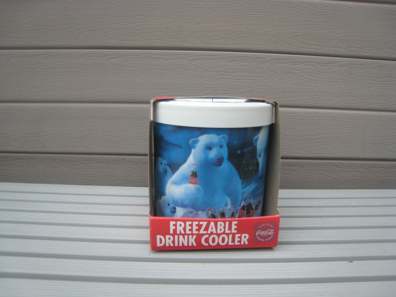 Title (ebay affiliate link): NIP Coca Cola The Fridge Freezable Drink Cooler Koozie Collectable Polar Bears