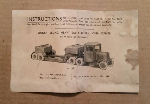Title (ebay affiliate link): Under Slung Heavy Duty Lorry,Instructions,W.Britain Toy Co.,1914-1918