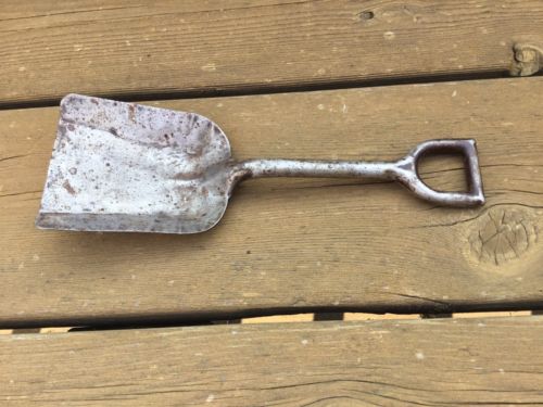 Title (ebay affiliate link): Vintage Toy Sand Shovel Heavy Gauge Pressed Steel 9" NICE PATINA