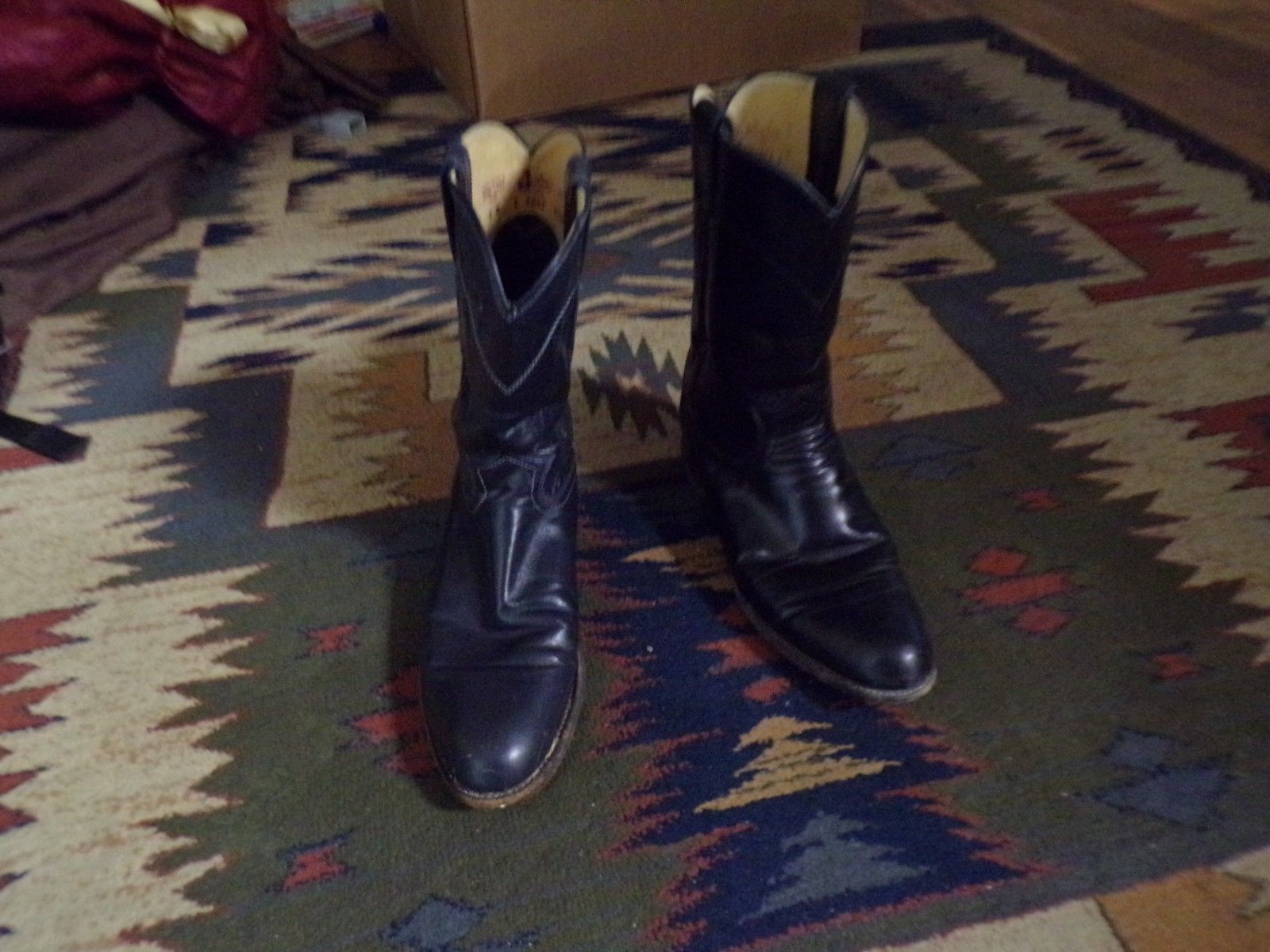 Title (ebay affiliate link): Justin black Ropers boots 9 B. Could be used for Living History.