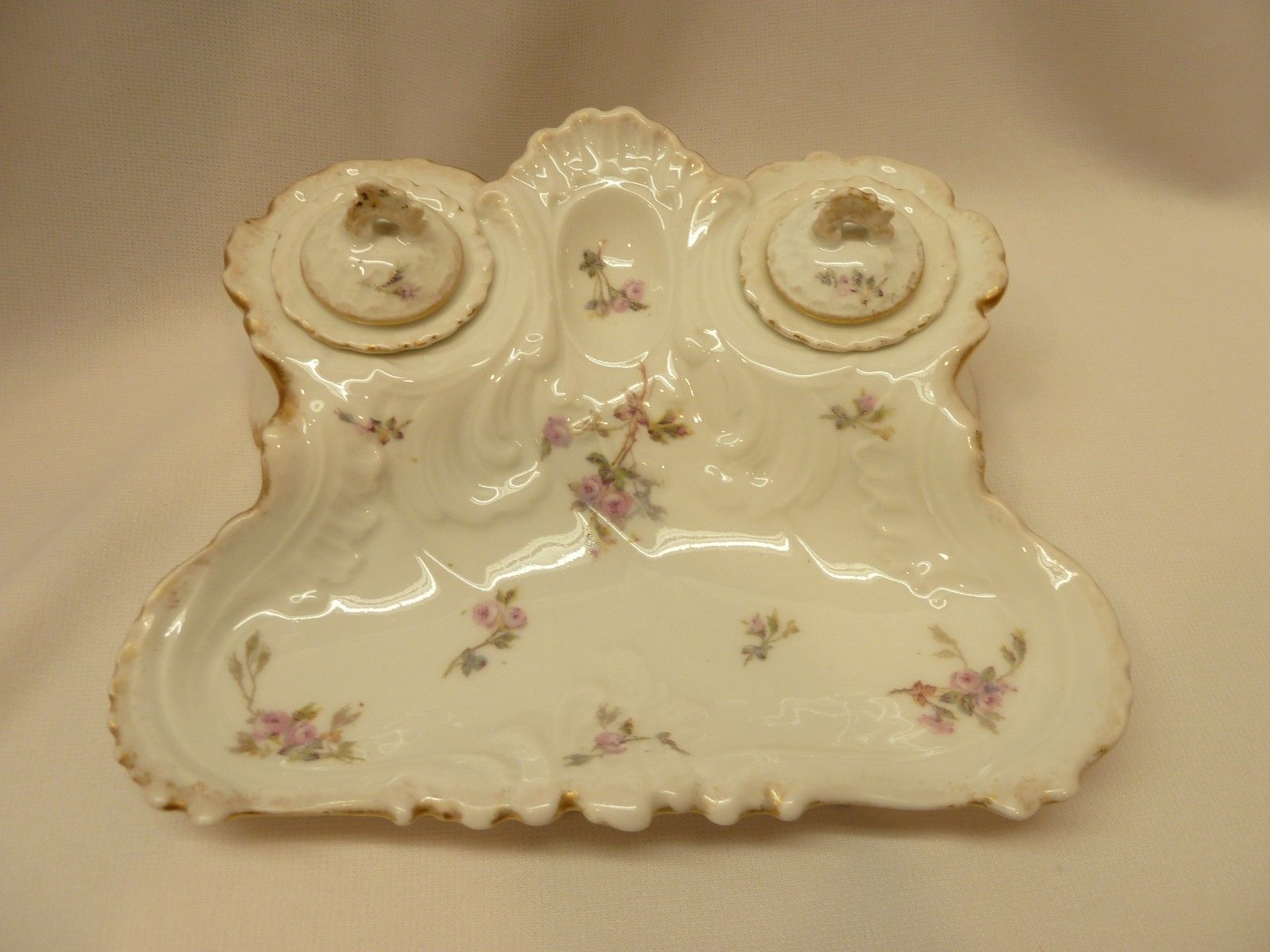 Title (ebay affiliate link): LR & L Limoges France 2 INKWELL WRITING DESK TRAY Lazeyras, Rosenfeld & Lehman