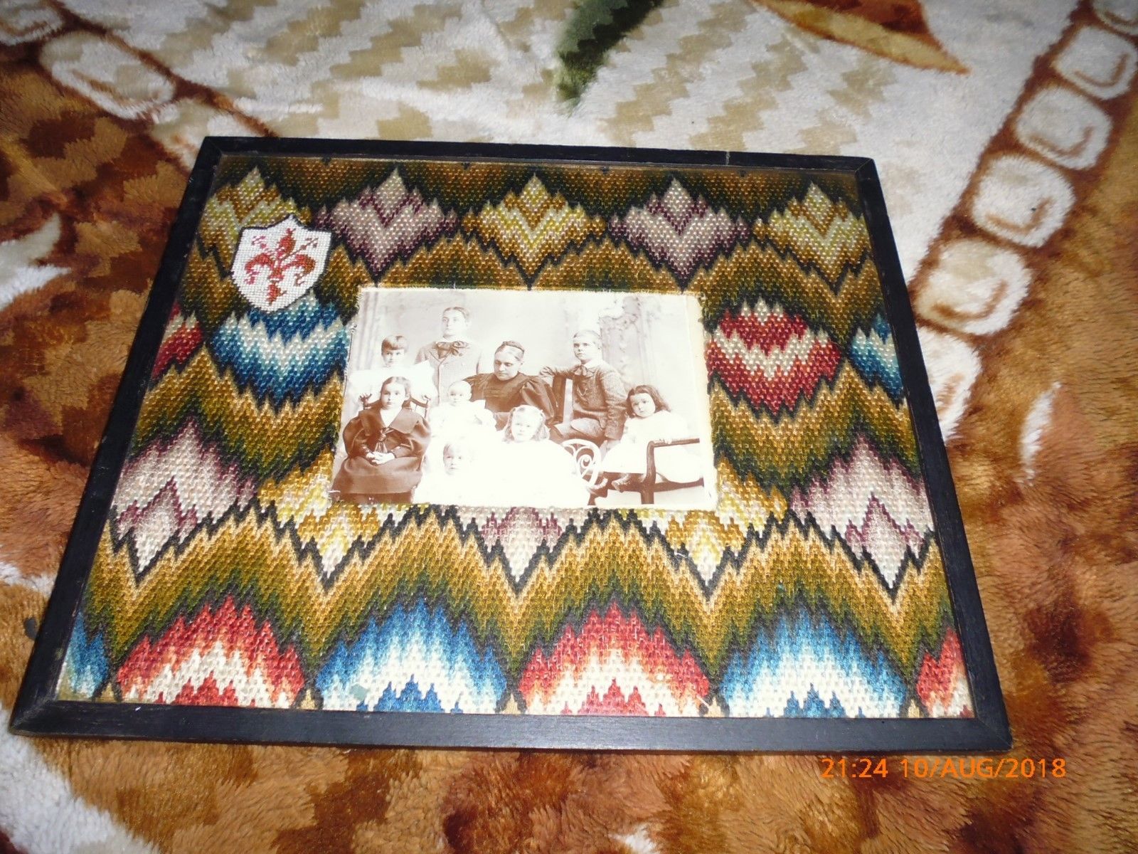 antique NEEDLEPOINT PICTURE FRAME eye dazzler