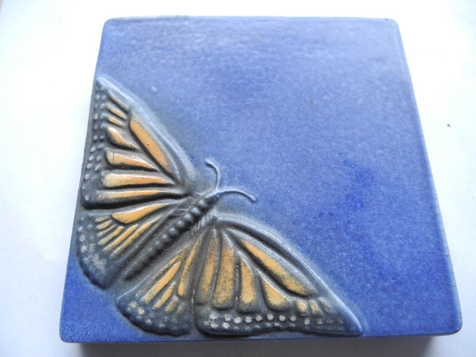 Title (ebay affiliate link): c2000 Surving Studios Monarch Butterfly ceramic bas-relief ART TILE Bug Insect
