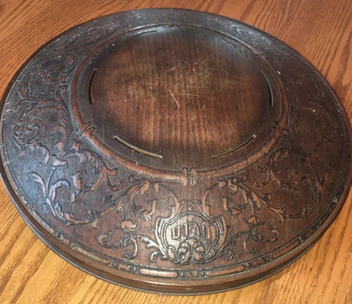 Antique Round Wood Carved Picture Frame UTAH Very Unusual 16" Shield