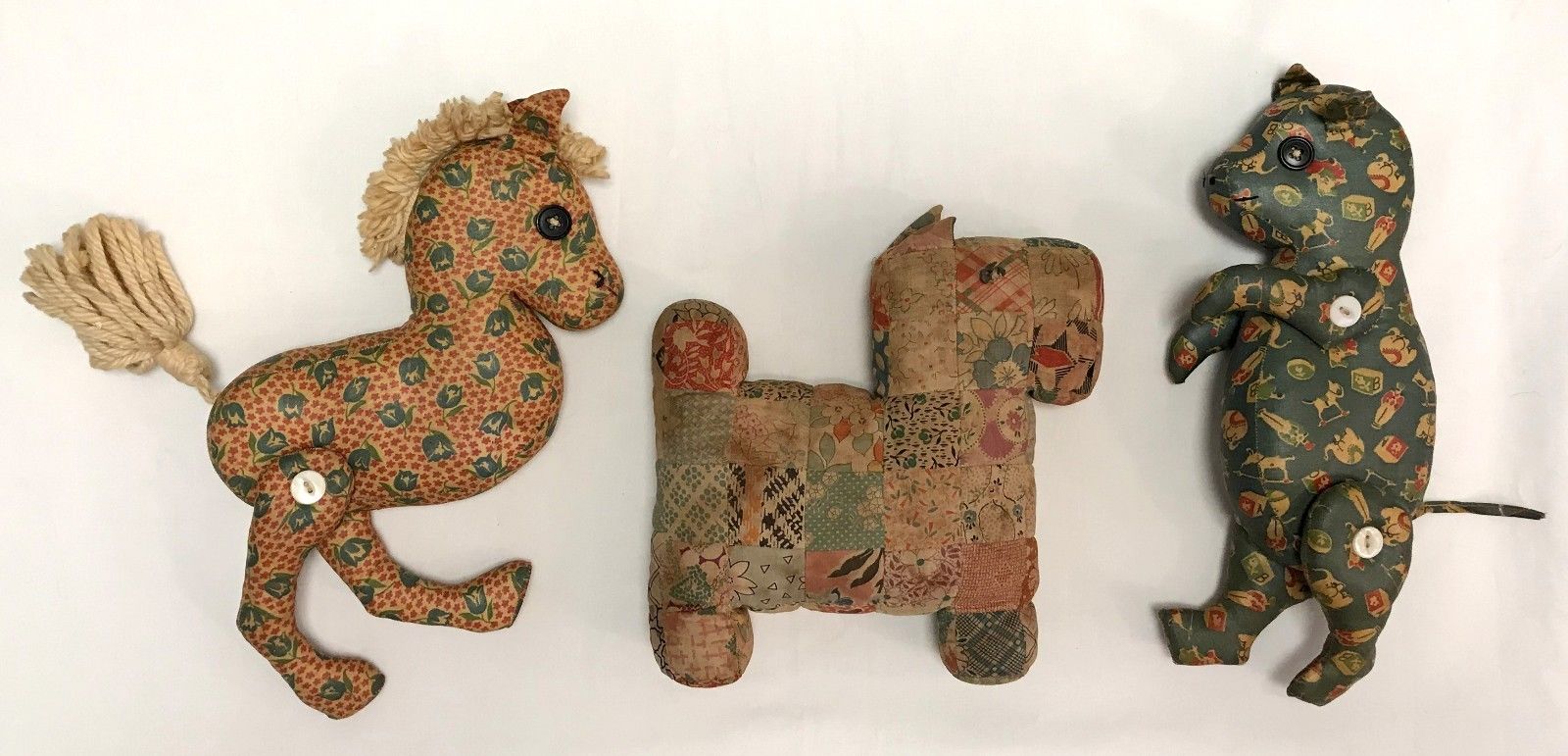 Title (ebay affiliate link): 3 Antique Stuffed Cloth Animal Primitive Prim Handmade Homespun Horse Dog Pig