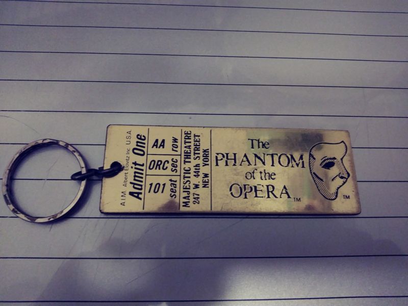 Title (ebay affiliate link): Vintage Phantom Of The Opera Metal Ticket Key Chain Majestic Theatre N.Y. N.Y
