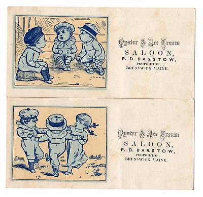LOT/2 OYSTER & ICE CREAM SALOON VICTORIAN TRADE CARDS*PD BARSTOW*BRUNSWICK MAINE