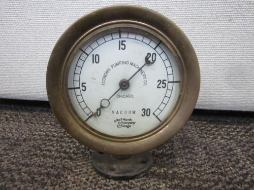VINTAGE BRASS JAS. P. MARSH CHICAGO VACUUM GAUGE ECONOMY PUMPING MACHINERY CO.
