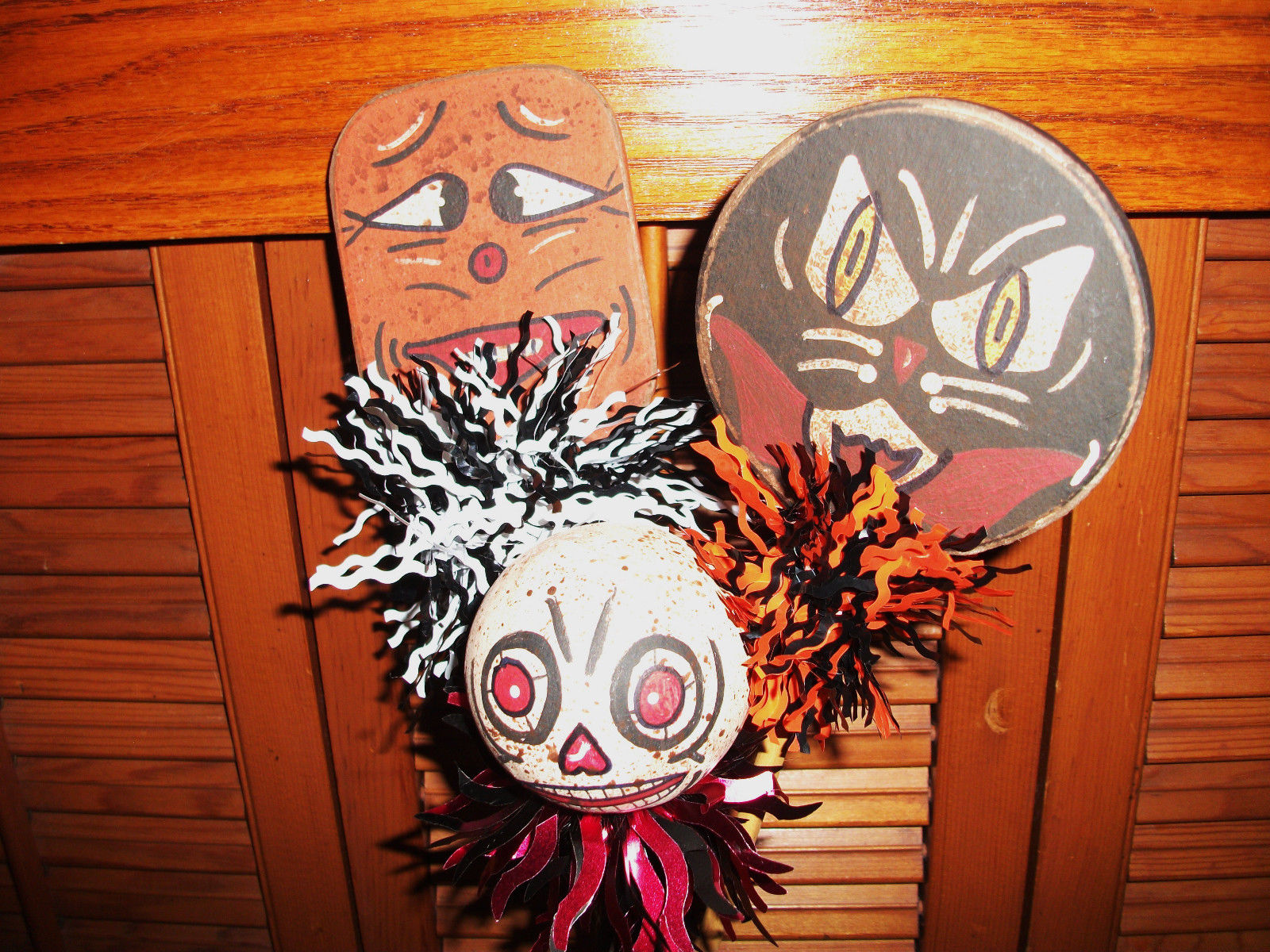 3 Primitive Vintage Style Papermache Halloween Noisemakers
