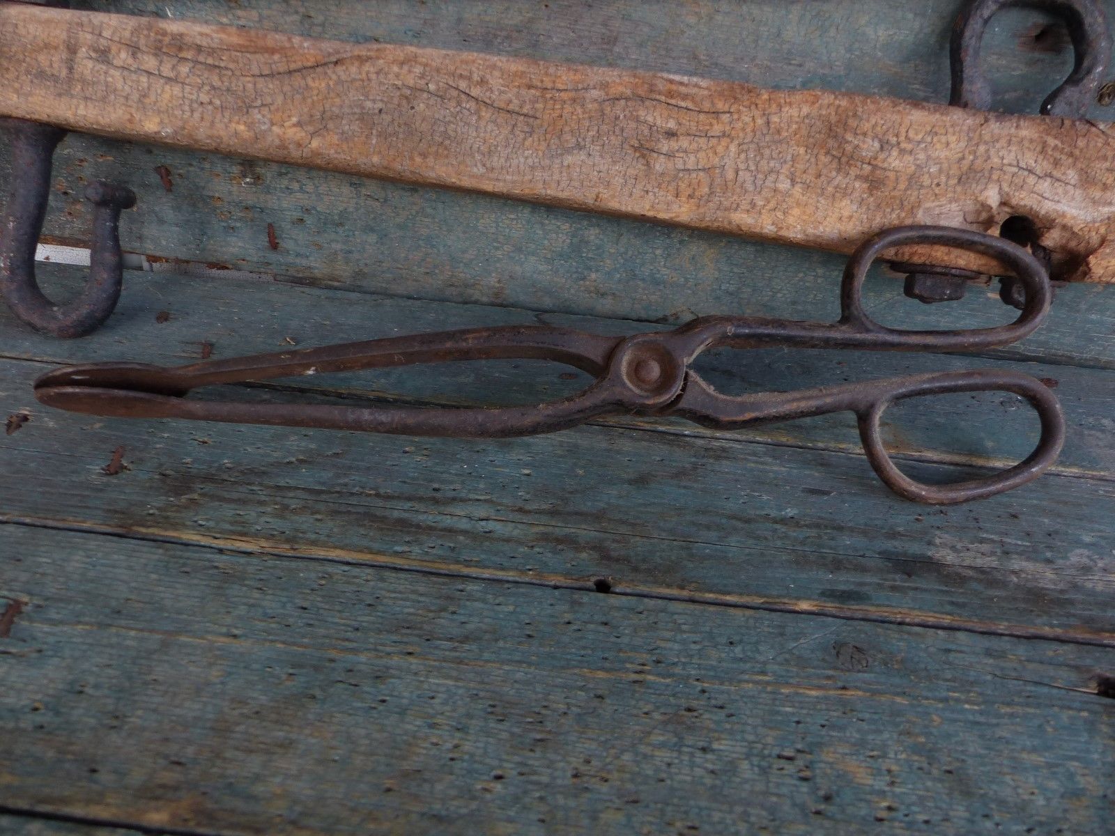 Title (ebay affiliate link): primitive antique wrought iron fireplace blacksmith button tongs 18th 19thc aafa