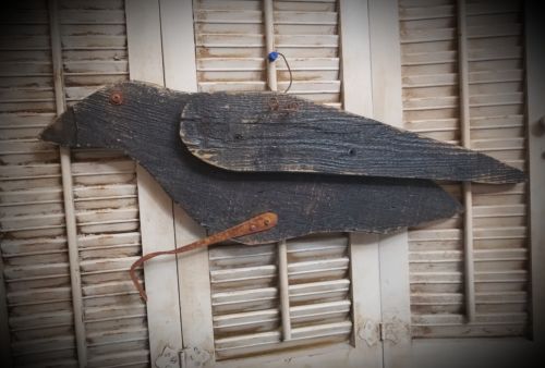 Title (ebay affiliate link): Primitive Handcrafted Wooden Crow Wall Door Hanger ~Folk Art ~ Halloween ~ Raven