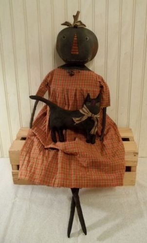 Title (ebay affiliate link): Primitive Grungy Big Black Pumpkin Girl Halloween Doll & Her Black Kitty Cat