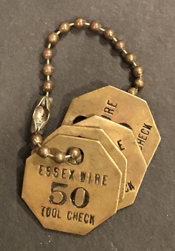 Title (ebay affiliate link): 4 Vintage Essex Wire Company Tool Check # 50 Brass Tag Lot
