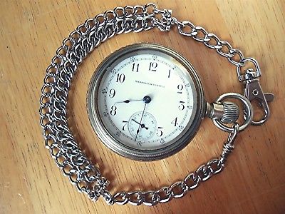 Title (ebay affiliate link): 12+" inch Double Stranded Nickel Curb Link Pocket Watch Key Chain Fob