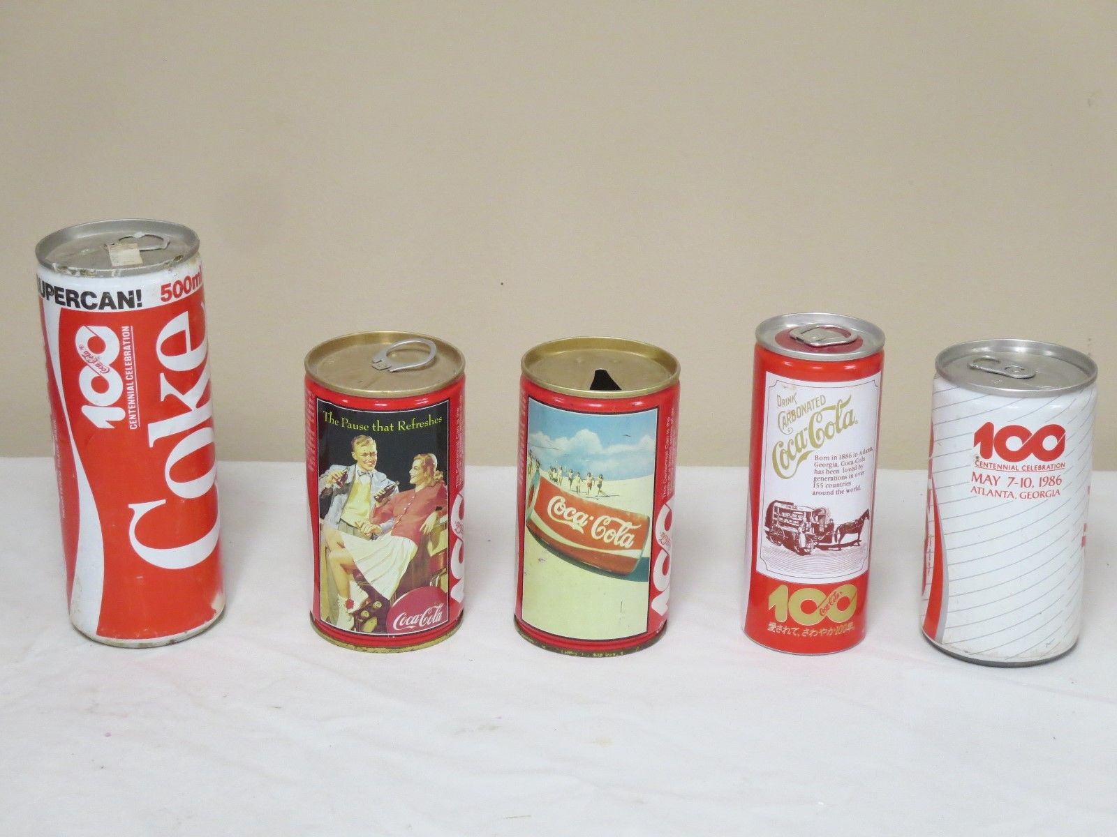 Title (ebay affiliate link): 5 COCA COLA CANS 100 YEARS CENNTENIAL COKE 1986 JAPAN, ENGLAND DIET COKE