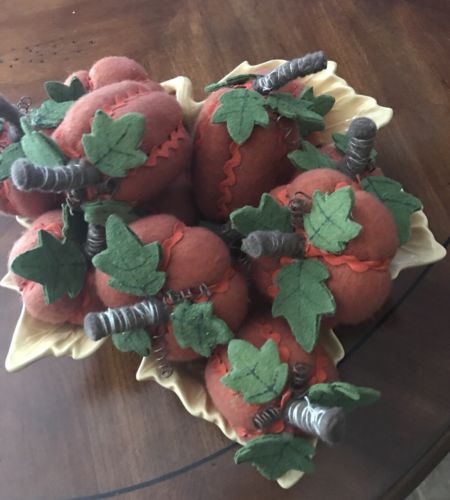 Title (ebay affiliate link): LOT OF 12 FELT PRIMITIVE PUMPKIN BOWL FILLERS ORNIES HALLOWEEN FALL 3 SHAPES