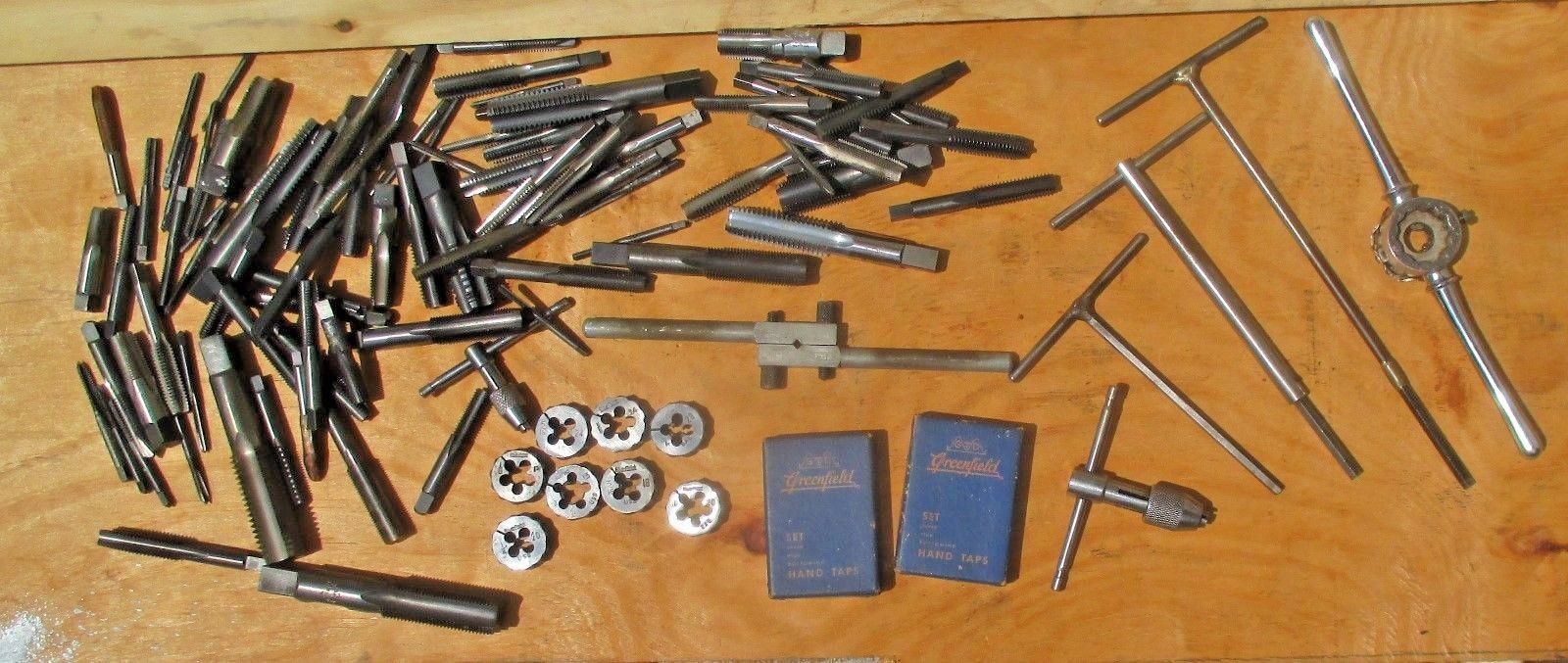 Title (ebay affiliate link): Large lot of 85 Machinist Threading Taps +Tap Wrenches + Dies & Die Handles ~