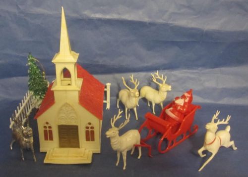 Title (ebay affiliate link): Vintage Plastic Christmas Church and Santa with Reindeer and sleigh