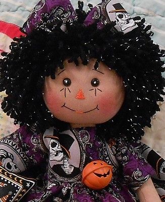 Halloween Raggedy Ann Doll Primitive Fall Decor Folk Art Skeleton Pumpkin Purple
