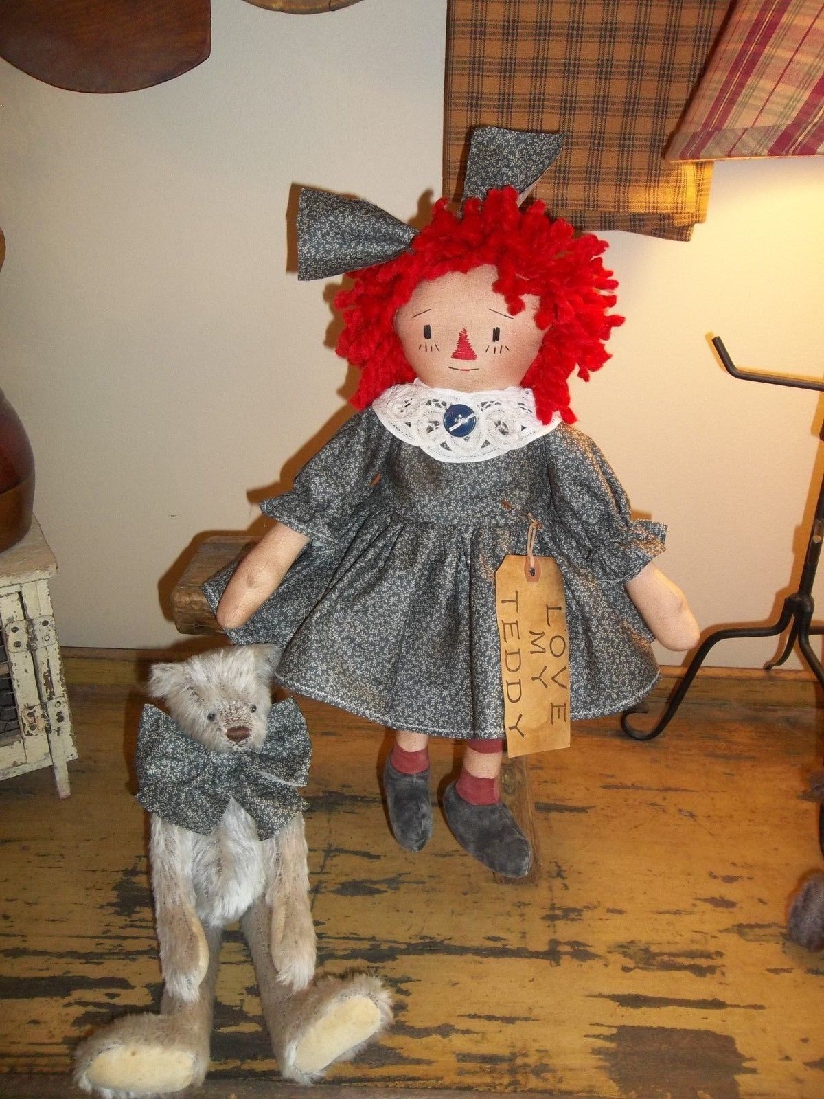 Title (ebay affiliate link): PRIMITIVE RAGGEDY ANN PRIM ANNIE DOLL W/ BOYD BEAR FRIEND