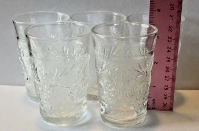 Title (ebay affiliate link): Set of 5 Anchor Hocking 5 Oz Crystal Juice Glasses Cup Sandwich Pattern Mint!