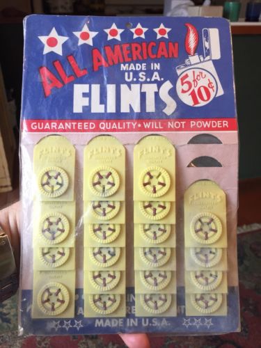 Title (ebay affiliate link): Vintage 5 star FLINTS STORE DISPLAY advertising cigarette lighters 5 For 10 Cent