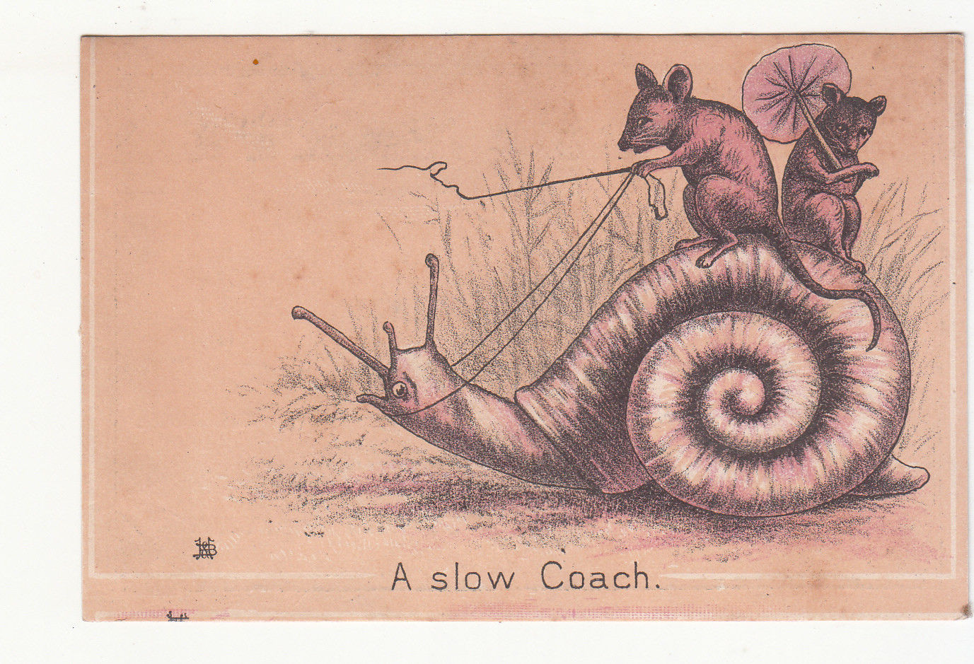 Title (ebay affiliate link): Globe Hotel Yorkshire NY Harvest Party Ray Cook A SLOW COACH Snail Card c1880s