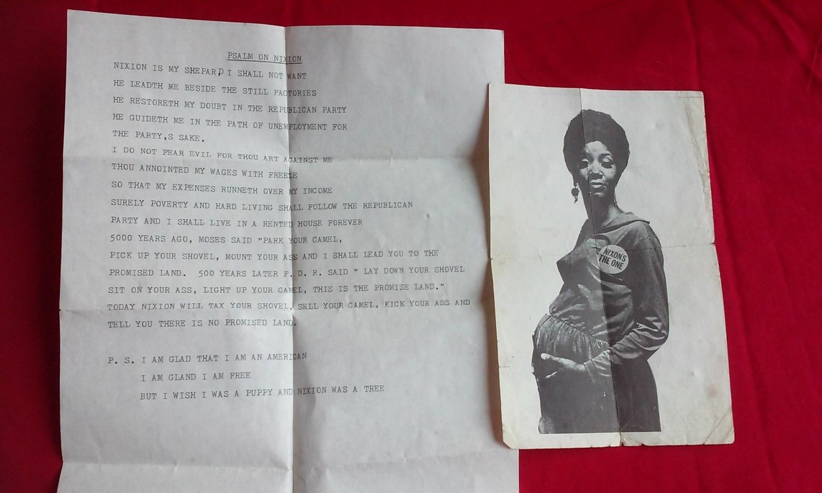 Title (ebay affiliate link): ANTI - RICHARD NIXON Psalm & Photo Pregnant Woman "Nixon''s the One" 1970''s Rare