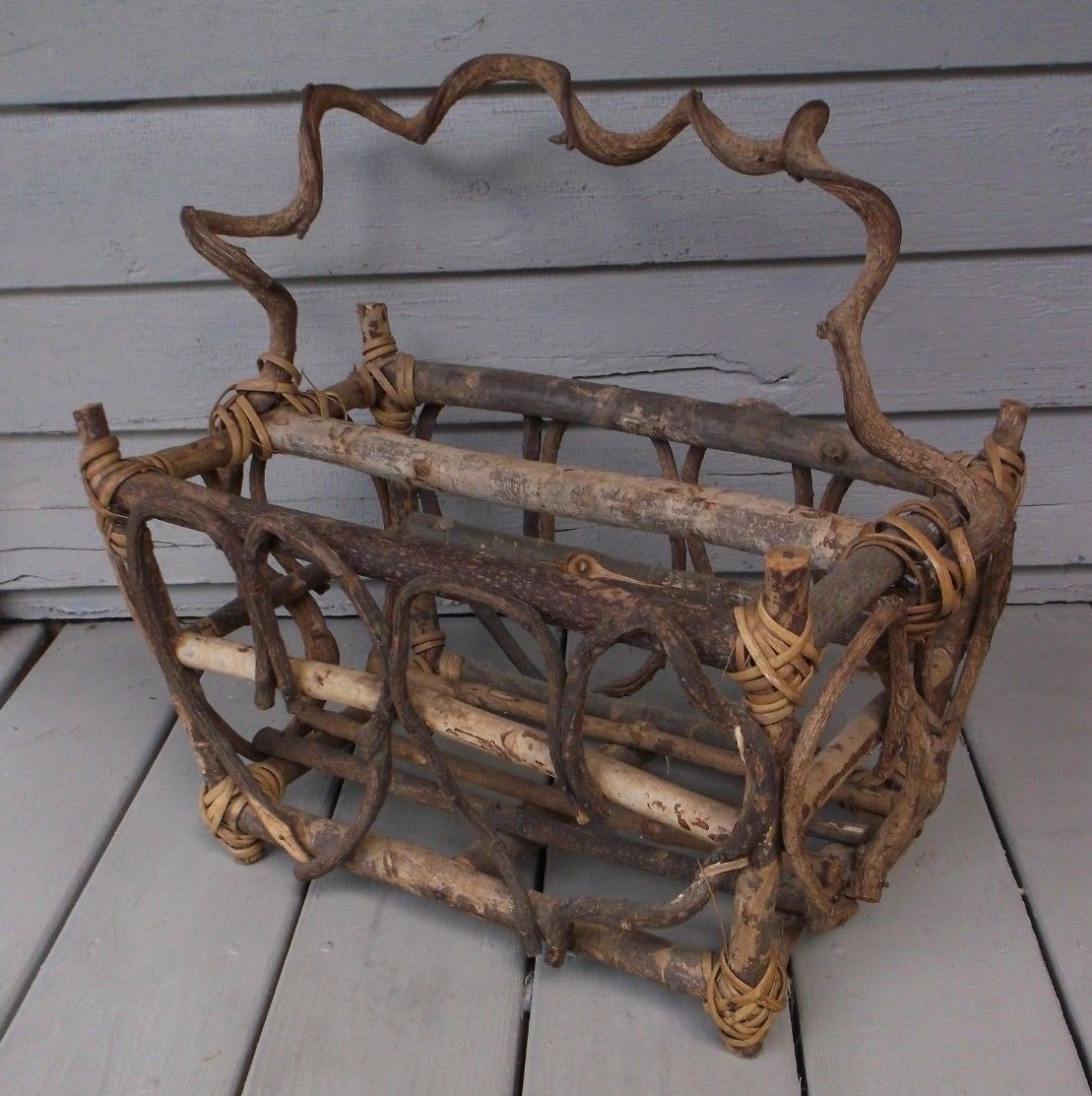ADIRONDACK STYLE TWIG AND RATTAN MAGAZINE STAND