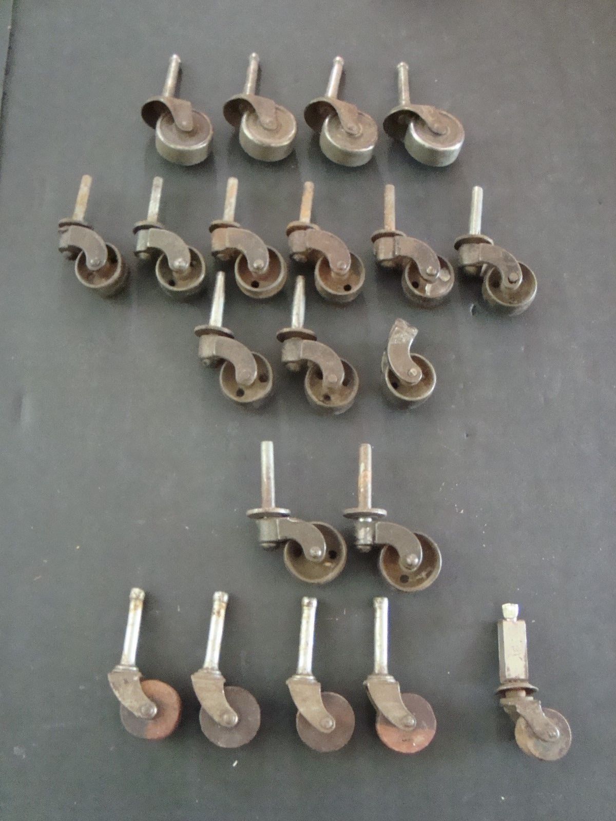 Title (ebay affiliate link): 20 Antique Casters Furniture Swivel Roller Wheels 15 Iron 5 Wood