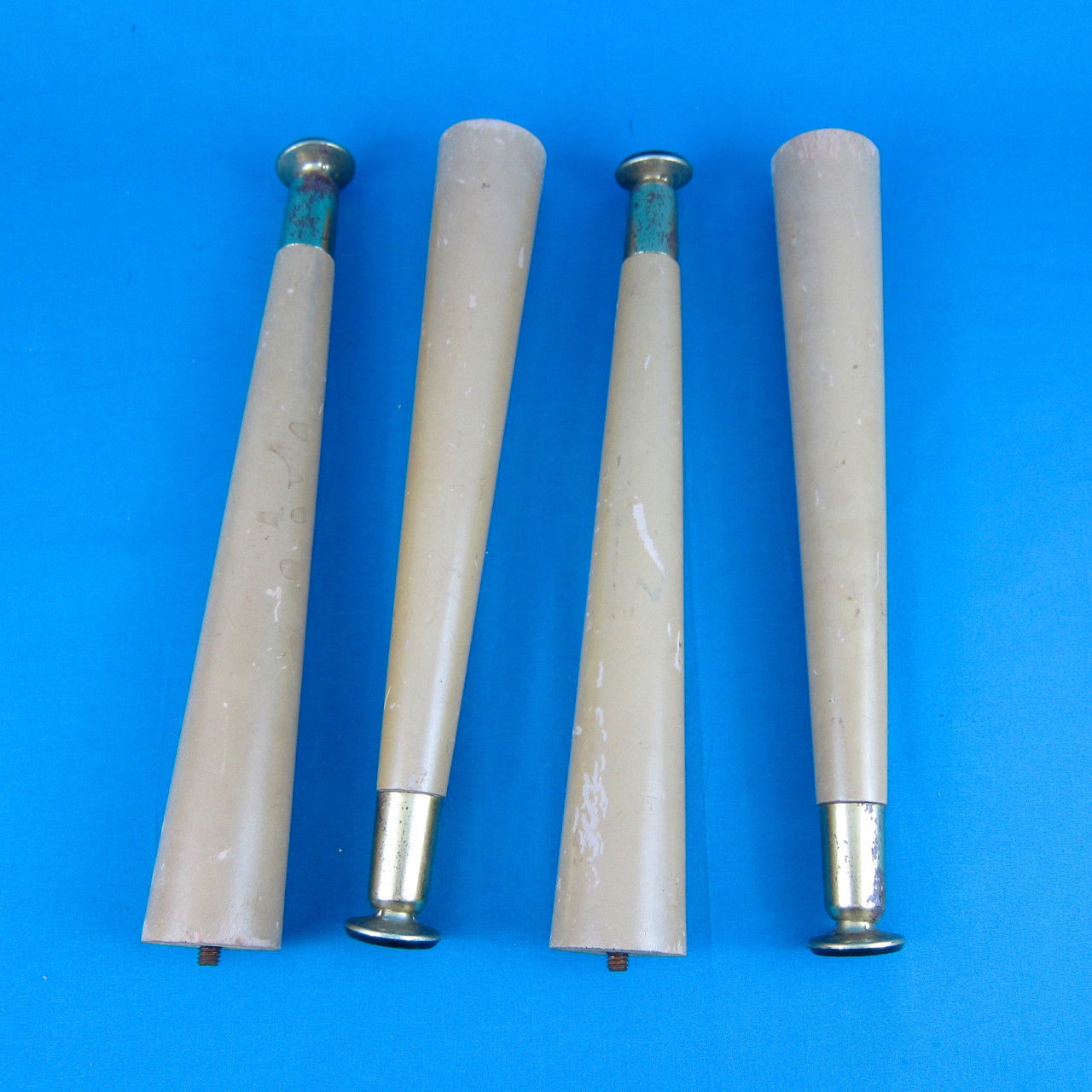 LOT x4 VTG Taper Wood Furniture Legs 12" mid century beige 1950s 60s salvage