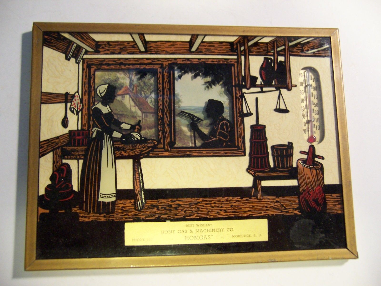 Vintage Mobridge, South Dakota silhouette advertising thermometer