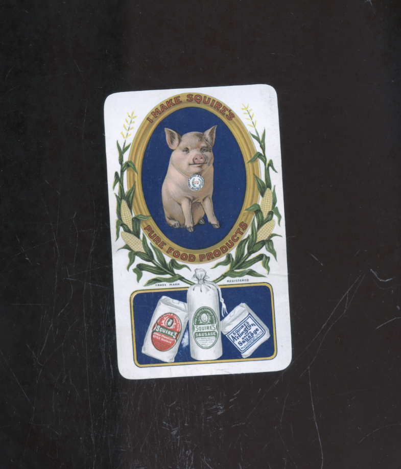 1908 Squire''s Pork Meats celluloid advertising pocket calendar, ad, Boston MA