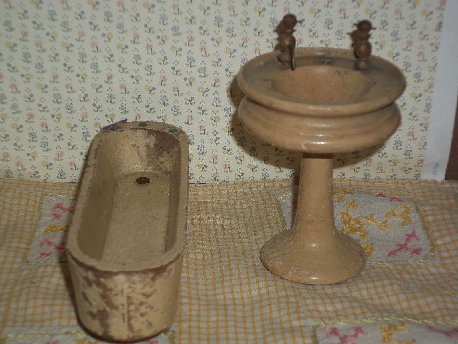 antique German wood bathtub sink dollhouse bathroom furniture