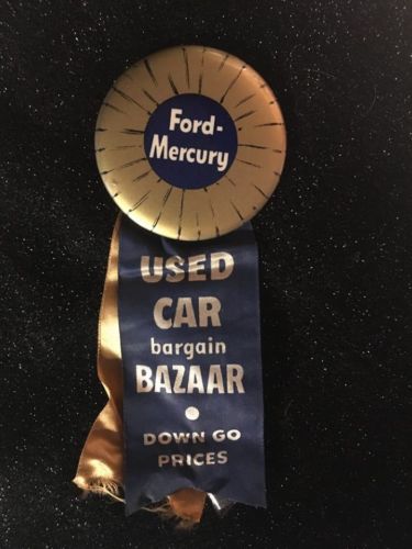 Title (ebay affiliate link): Vintage Ford-Mercury Used Car Bargain Bazaar Salesman 1940s Pinback/Ribbons
