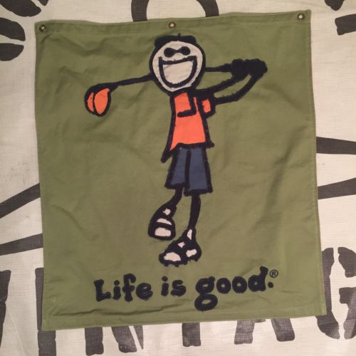 Title (ebay affiliate link): LIFE IS GOOD patchwork Store Display Banner Sign 20" x 22" t-shirt MINT! golf