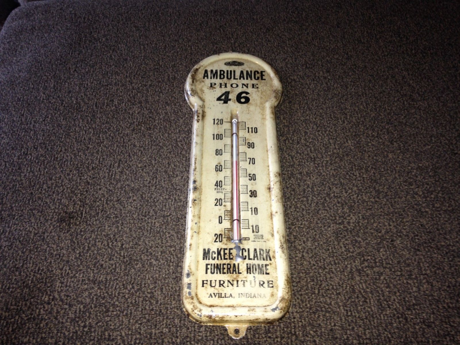 Vintage Mckee Clark Funeral Home furniture thermometer Avilla Indiana thadco
